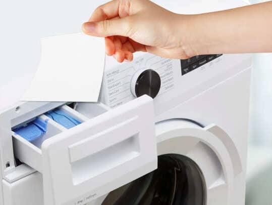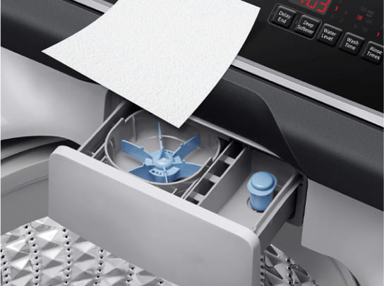 This one’s not really a step for you. It’s for your machine! As water flows in your top-loading machine, the sheets dissolve and mix with the water creating a liquid, powerful fabric-friendly solution. At the end of your wash cycle, your clothes will come out pristinely clean!