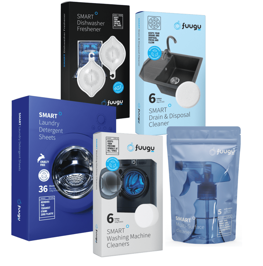 Dishwasher Cleaners Drain and Disposal Cleaners Washing Machine Cleaners Fuugu Laundry Detergent Sheets Multi-Surface CleanerFuugu Smart Dishwasher Cleaners