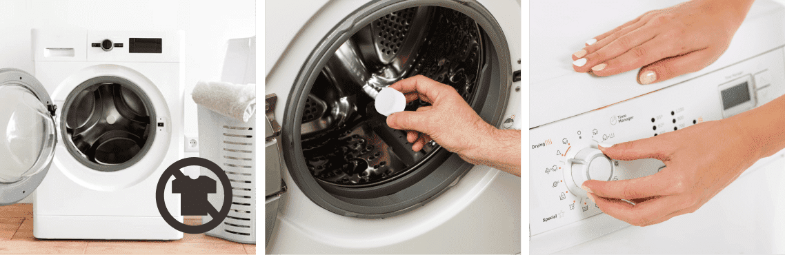 Add one tablet directly to the washing drum. (Do not place it into the detergent dispenser).