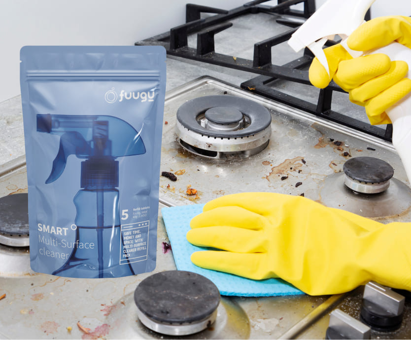 Use Fuugu to take care of surfaces in your bathroom, kitchen and other places around the house.
